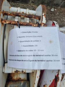 Descrição específica da peça: Moitão Simples tipo Anzol, Capacidade 25 ton, 3 Polias
