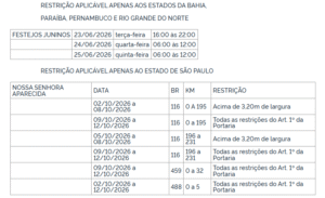 Dispõe sobre a restrição do trânsito de Veículos e Combinações de Veículos excedentes em peso e ou dimensões aos limites máximos estabelecidos pela Resolução nº 882/2021 do Conselho Nacional de Trânsito e suas alterações, passíveis ou não da concessão de Autorização Especial de Trânsito – AET ou Autorização Específica – AE, em rodovias federais nos períodos dos feriados do ano de 2026.