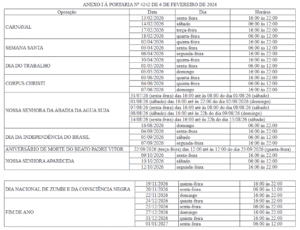 § 3º – Nos dias e horários que coincidem com o período de realização da Festa do Aniversário da Morte do Beato Padre Victor, no ano de 2026, a