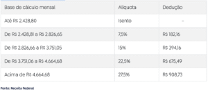 Tabela mensal do Imposto de Renda em 2026